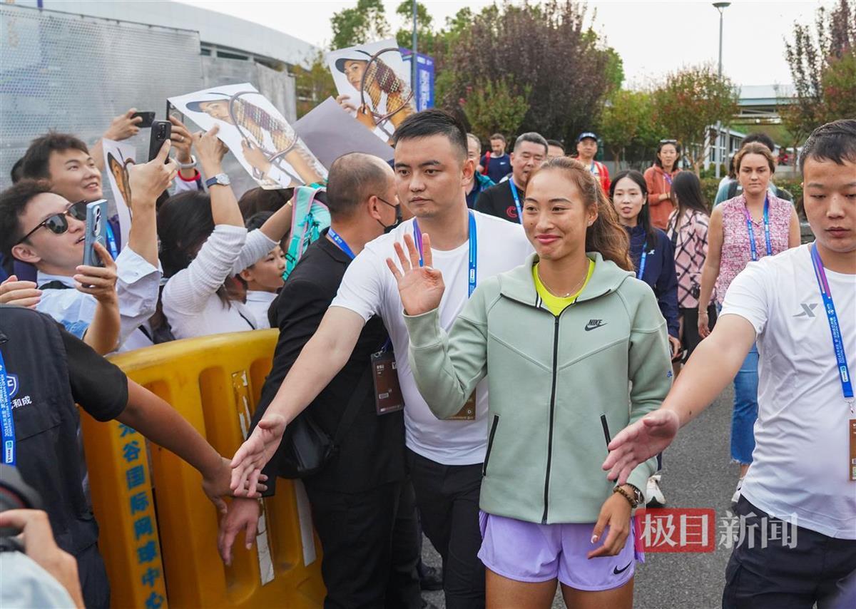 晚上5时许,极目新闻记者在武网嘉年华的“LOVE武网”大看台看到,前来为郑钦文庆生的球迷围满了整个活动现场。球迷们举着郑钦文比赛的海报、为郑钦文加油的标语,等待着郑钦文来到现场。