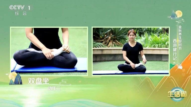 左腿在上,右腿在下,双腿叠放后坐下,后背挺直,想象自己是一只丹顶鹤,脊柱向上伸展,手自然放在大腿上。