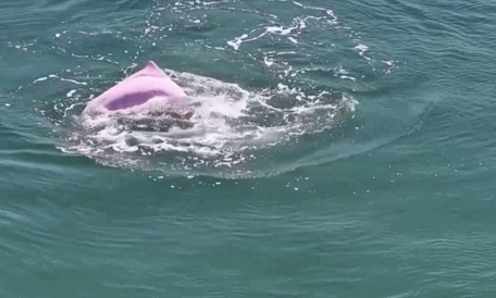 中华白海豚属于国家一级保护动物,素有“美人鱼”和“水上大熊猫”之称。中华白海豚在幼体时为暗灰色,体色随着年龄增长变浅,亚成体时灰色和粉红色相杂,成体为纯白色,游动时常由于表皮下血管充血而透出粉红色。