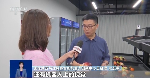 国家地方共建具身智能机器人创新中心总经理 熊友军:比如说力度、关节的角度、整个手的姿态,还有机器人上的视觉,看到的视觉感知的信息,包括还有内部决策的过程实际上都会记录下来。实际上是一个信息量非常广、非常稠密的数据。今天是芒果,明天是橙子,后天是苹果,再后天可能是工厂流水线上的一个工件或者家庭的一个物品,都知道怎么去操作了。这就像一个小孩子,在学习的过程中是类似的过程,我们给他一些奖励或惩罚,它就会知道我以后碰到类似的场景怎么处理。