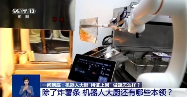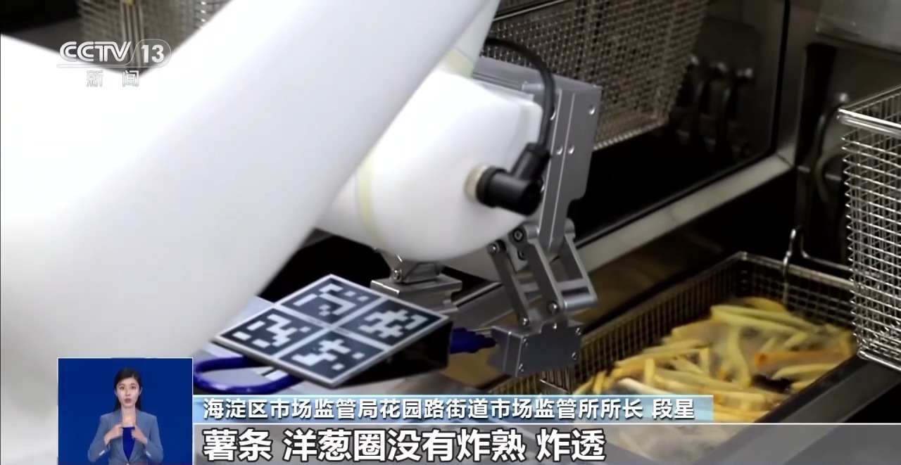 海淀区市场监管局花园路街道市场监管所所长 段星:从生到炸制到熟到出餐,每一个环节我们都是严格根据食品加工过程中会遇到的风险点,会受到污染的风险对它进行了评估。我们发现在人工智能从事炸制类这种简单的操作,风险点是可控的。