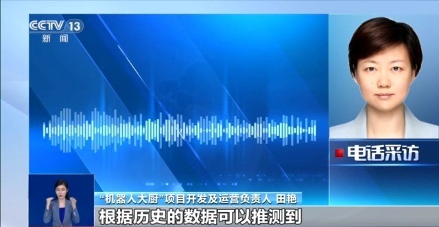“机器人大厨”项目开发及运营负责人 田艳:比如旁边是个演唱会的地方,根据历史的数据可以推测到是不是要多备点东西或者提前烹炸一些东西,它会有预估这个趋势的能力。当然这个是要迭代,一开始可能会不太准,它会有个学习的过程,数据越多会越准。如果它预测到或者推算到我们现在进入低峰了,它会自动把炸锅关掉,会节能。