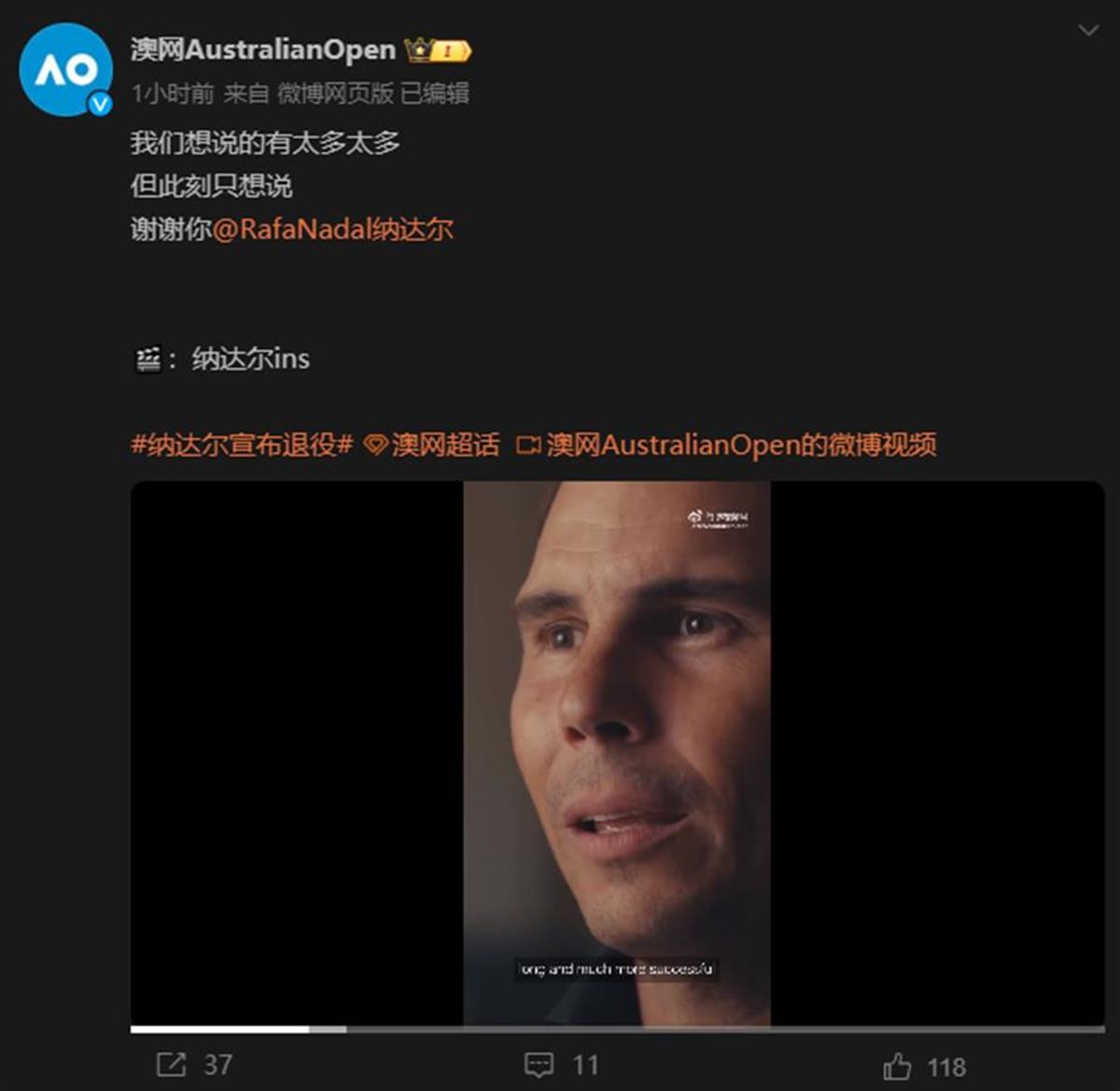 澳网:我们想说的有太多太多,但此刻只想说,谢谢你。