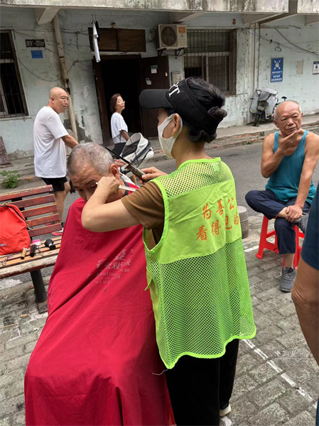 志愿者为居民修剪头发。 通讯员供图