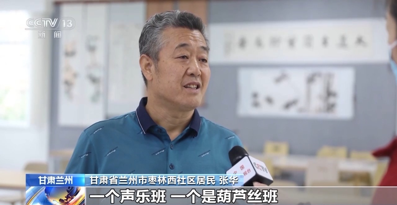 甘肃省兰州市枣林西社区居民 张华:社区对老年人服务特别好,我就报了两个班,一个声乐班,一个是葫芦丝班,还有舞蹈、瑜伽、形体班,就比较多,丰富老年人的文化生活。
