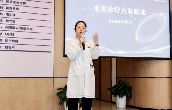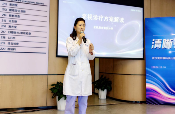 在本次活动中,武汉爱尔眼科洪山医院眼科白内障青光眼专科雷琼主任强调了中老年人定期进行眼部检查重要性,呼吁广大患者要重视眼部健康。雷琼主任现场给大家进行的详尽的科普讲解,并介绍了现代诊疗方式如何为老视患者提供多样化的治疗选项。