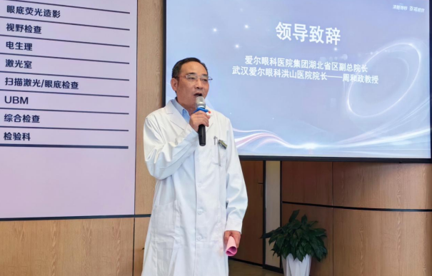 爱尔眼科医院集团湖北省区副总院长、武汉爱尔眼科洪山医院院长周和政教授上台发言,周院长表示:“老视MDT由湖北省内多家医院的眼科专家组成,涵盖了视光、屈光、白内障等多个学科。通过多学科眼病专家的联合会诊,患者可以得到一站式、个性化的诊疗服务,避免了在传统就医模式下可能遇到的多次转诊和重复检查。”
