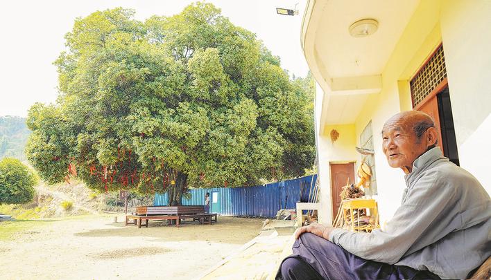这棵树就在75岁爹爹胡寸明的屋前。“它与我相伴75年了!”胡爹爹乐呵地说,秋天送香,夏天遮阳,凉风习习。