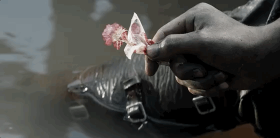 在生命接近终点时,李想用舌尖触碰糖纸,再一次感受它的甜,随后包裹住那朵妹妹送的小花,将它们放入水中。朱一龙说,李想掏出了糖纸,用那一丝甜支撑自己走完生命的最后时刻。他再也无法与家人团聚,但他将“甜”留给了身后的同胞。
