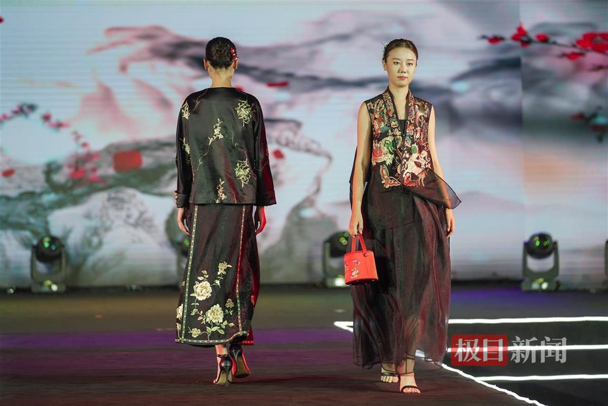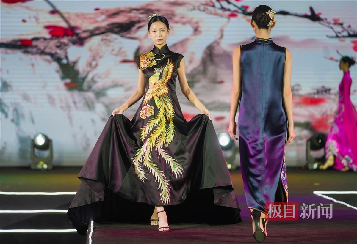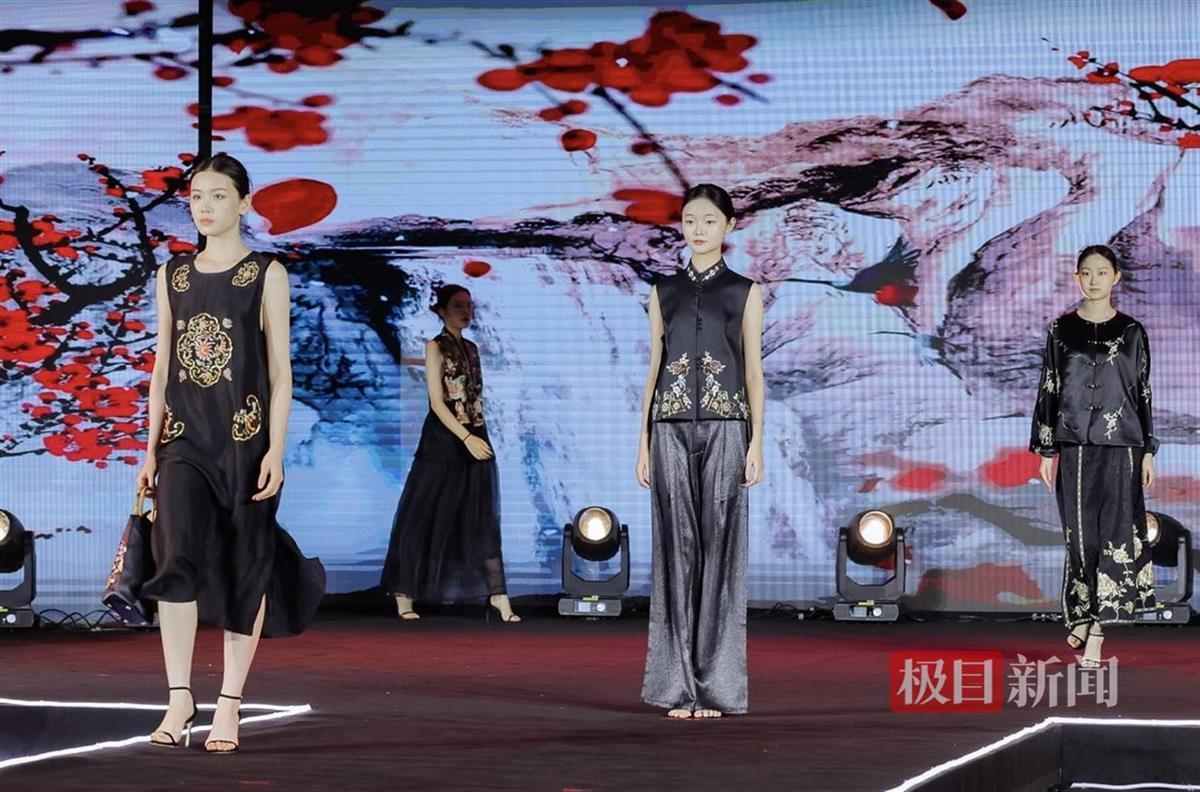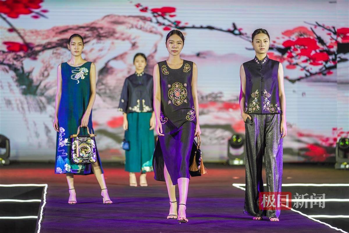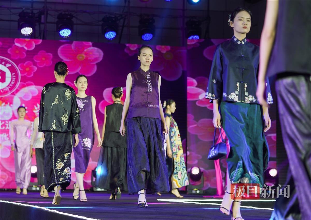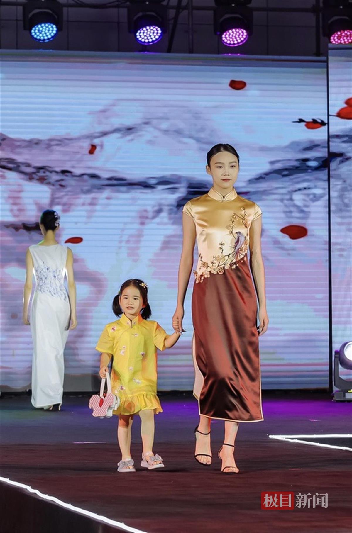 武汉纺织大学服装学院教授、湖北省非物质文化遗产研究中心主任叶洪光接受极目新闻记者采访时表示,本次时装秀共展示了60余套中式时尚与传统服饰,类型包括女装、男装和童装,这些服装由武汉纺织大学非遗团队设计,非遗传承人和纺大非遗团队师生共同全手工绣制而成,创作中将荆楚纺织非遗元素与国际时尚设计趋势进行了巧妙结合。