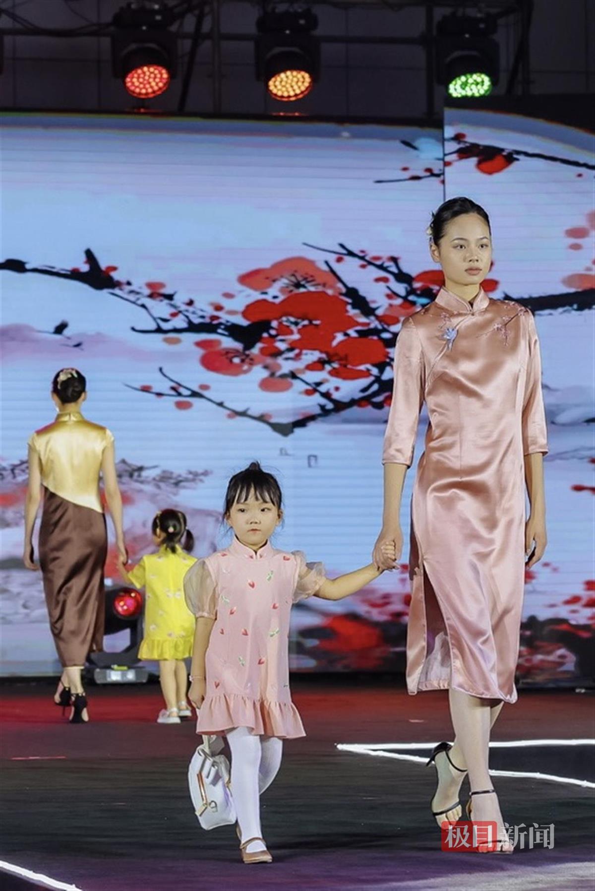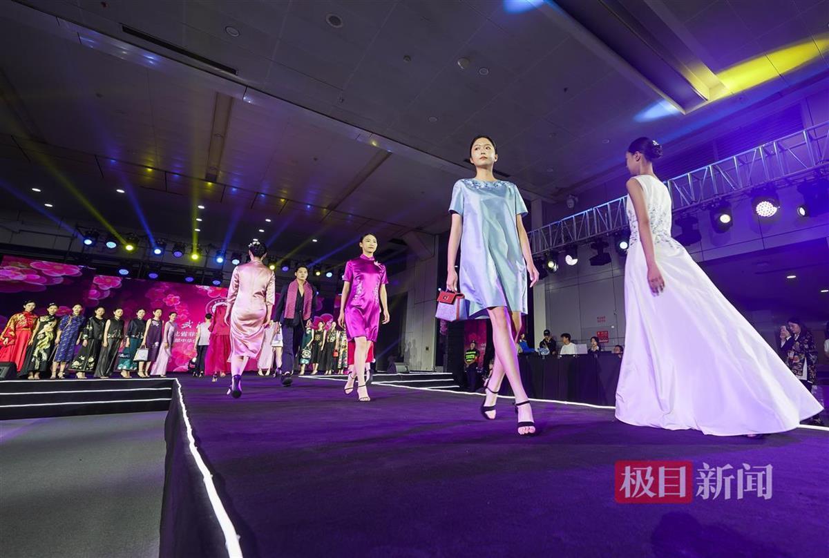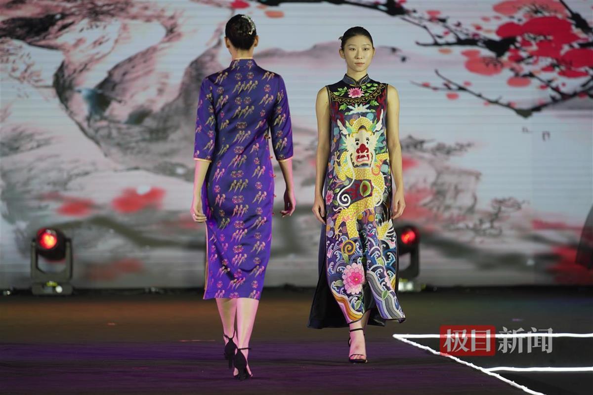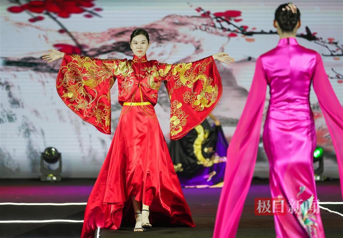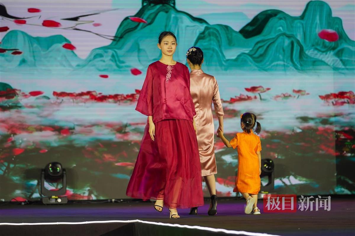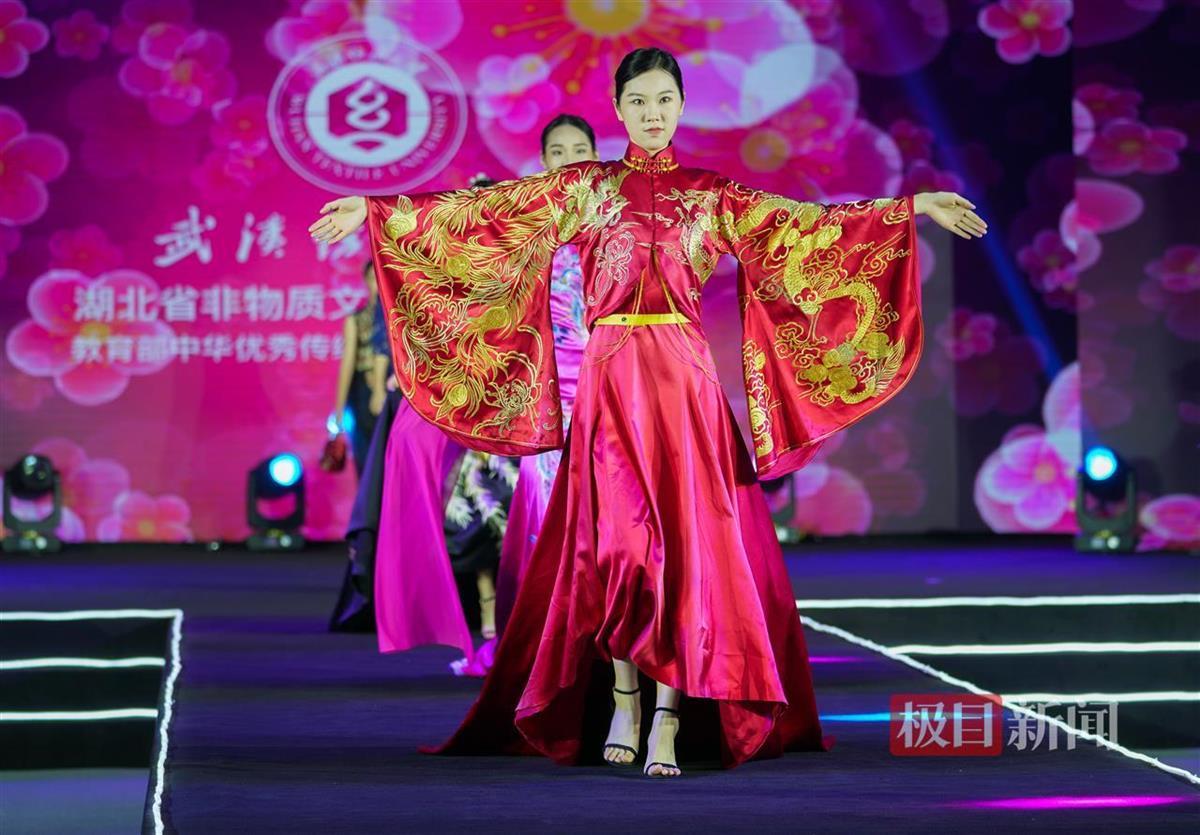 武汉纺织大学服装学院教授、湖北省非物质文化遗产研究中心主任叶洪光接受极目新闻记者采访时表示,本次时装秀共展示了60余套中式时尚与传统服饰,类型包括女装、男装和童装,这些服装由武汉纺织大学非遗团队设计,非遗传承人和纺大非遗团队师生共同全手工绣制而成,创作中将荆楚纺织非遗元素与国际时尚设计趋势进行了巧妙结合。