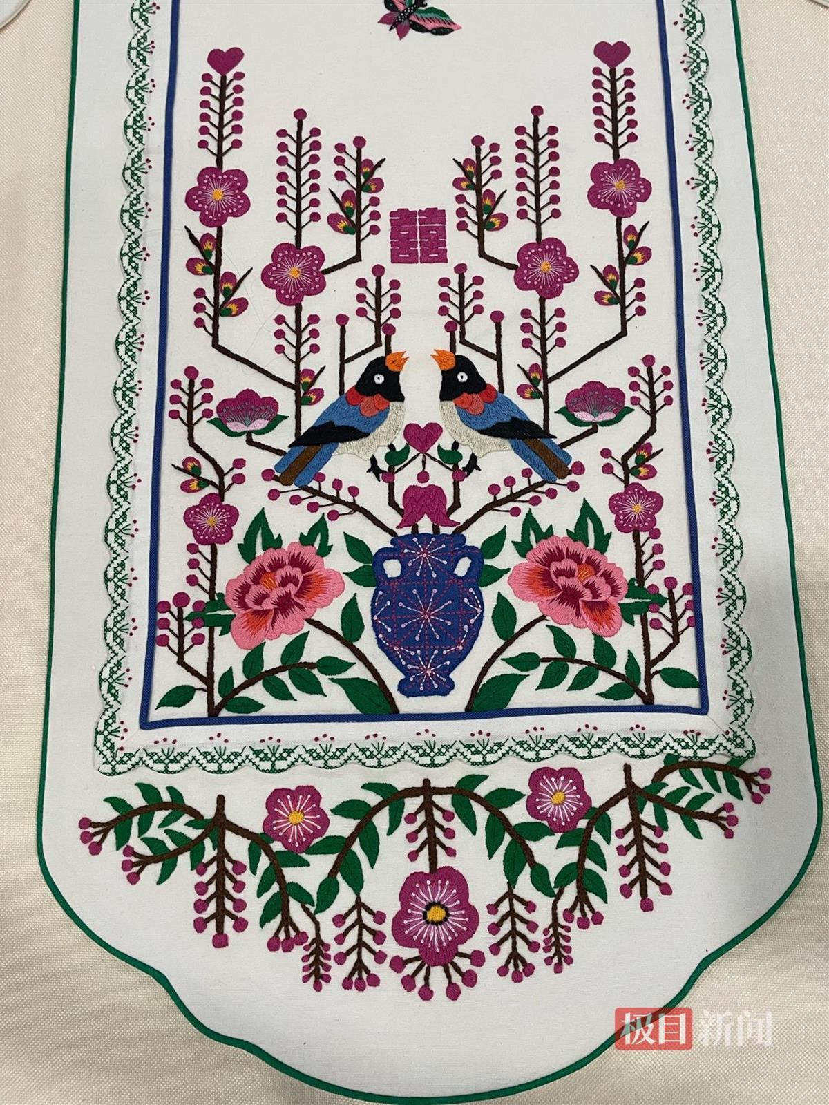 叶洪光告诉记者,此次成果展展品包括服装、饰品、桌旗、台灯、收纳等,创作中融合了传统技艺与现代设计,探索了红安绣活在当代生活中的应用场景,努力拓宽传统工艺在新时代的可能性。