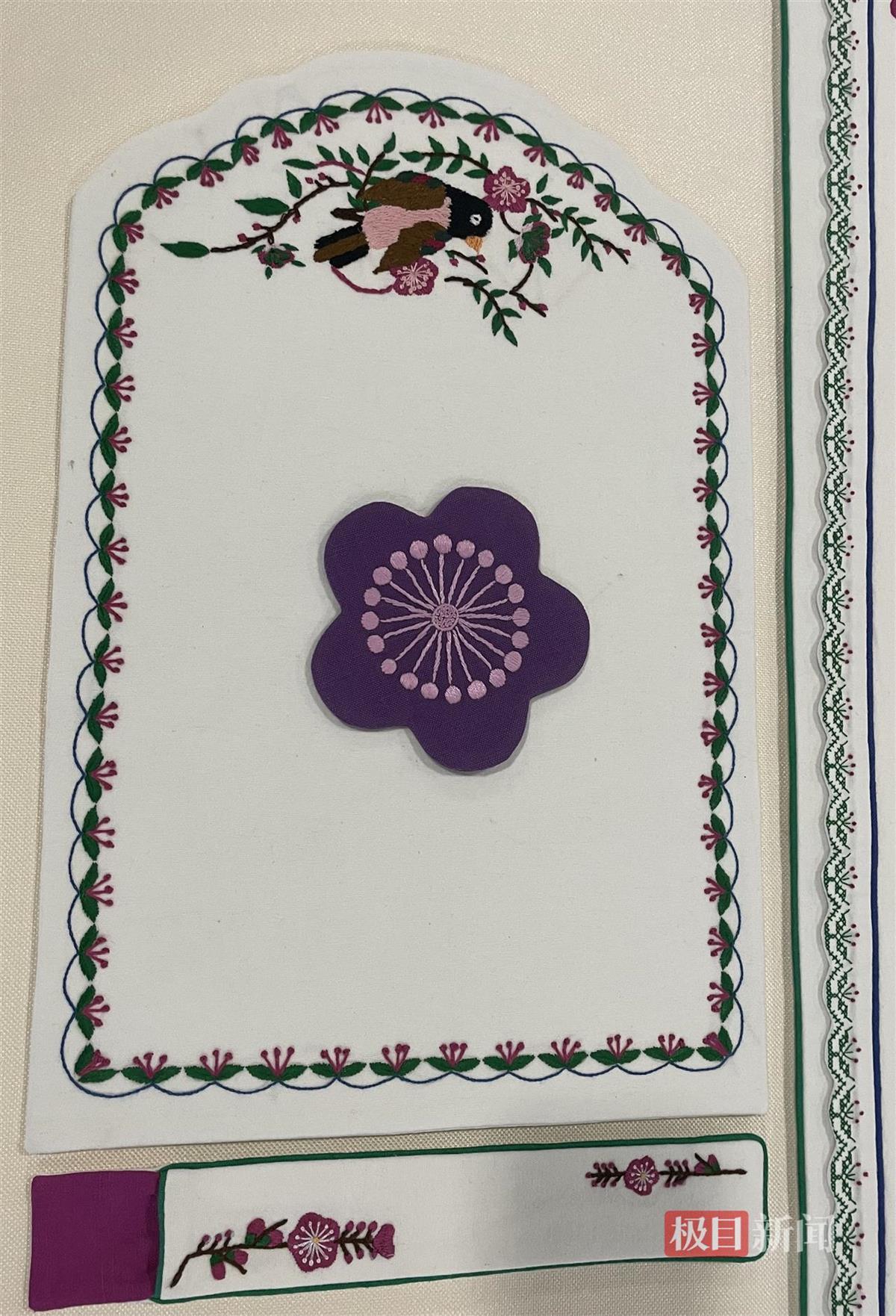 在时装秀后台,汉绣代表性传承人王燕向极目新闻记者介绍道,为了更好地诠释传统刺绣与当代生活的融通,创作者们从湖北丰富的地域文化信息和纹样元素中,提炼出“梅花”这一代表符号,通过不同刺绣技艺将其呈现在时装中,兼顾了时尚度、艺术感与非遗技艺的创造性转化和创新性发展。