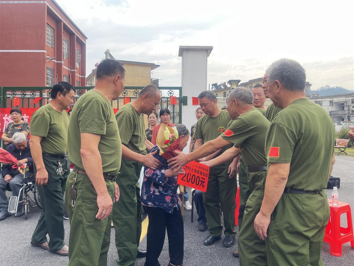 10月10日,龚岳林等10位原42军(78入伍)赤壁籍参战老兵整齐穿着军绿服装,左胸上绣着一颗红五角星,左肩上绣着一面五星红旗,来到赤壁市光荣院看望烈士王木兵母亲和优抚、优待对象。