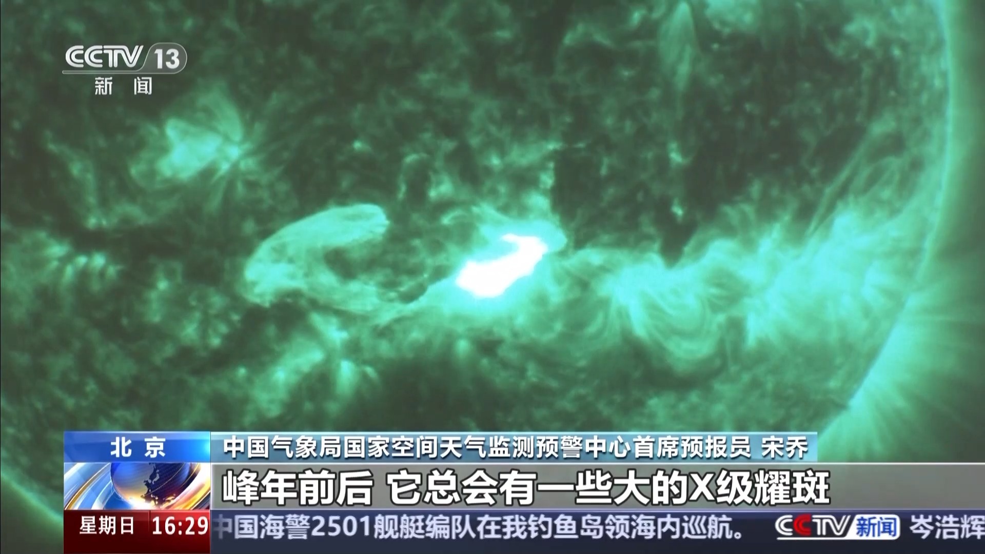 中国气象局国家空间天气监测预警中心首席预报员 宋乔:地球上一年有四季,有高温、低温,总会在夏天的时候会出现一个高温天气。太阳活动也是类似的,就是说在太阳活动高峰的时候,峰年前后,它总会有一些大的X级耀斑。