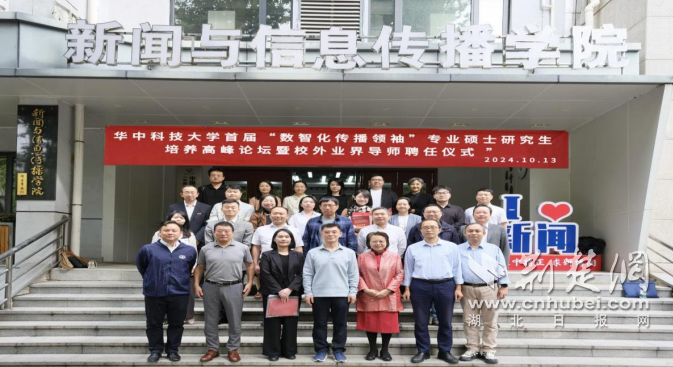 荆楚网(湖北日报网)讯(通讯员刘佳艳、戴欣雨、王恬恬)10月13日,华中科技大学首届“数智化传播领袖”专业硕士研究生培养高峰论坛暨校外业界导师聘任仪式在新闻与信息传播学院一楼演播厅拉开帷幕。华中科技大学研究生院培养办副主任范晓红,新闻与信息传播学院党委书记金凌志,学院党委副书记、教授李卫东,学院党委副书记李彬彬,学院副院长、副教授鲍立泉出席了会议。湖北省新华书店(集团)有限公司总经理、高级记者、“湖北产业教授”陈栋,人民日报社《国际金融报》副总编辑许凯等专业学位硕士研究生校外硕士生导师、业界导师以及学院师生代表参会。本次会议旨在深化学院产教融合教育水平,围绕专业硕士研究生的培养模式与高质量发展展开研讨,通过打造高质量校企合作平台,为社会培养更多具有全球视野和创新能力的高素质专业人才。会议由学院党委副书记李卫东主持。