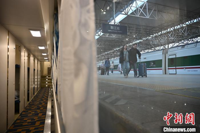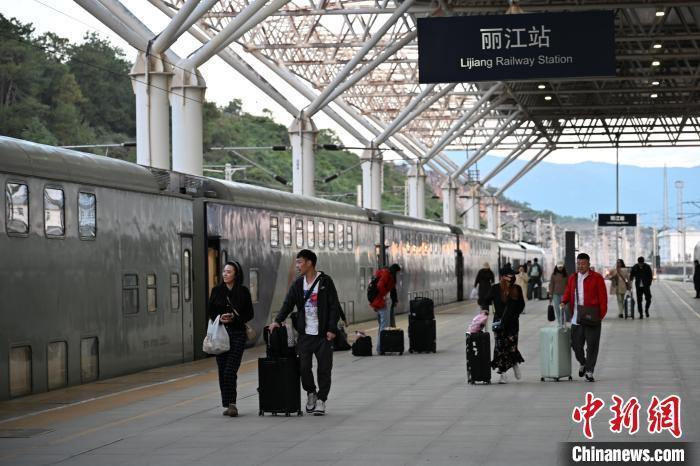 10月14日清晨,列车抵达丽江站。中新社记者 刘冉阳 摄