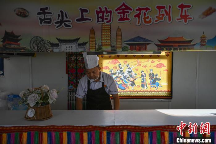 10月14日,餐车的厨师在忙碌。中新社记者 刘冉阳 摄