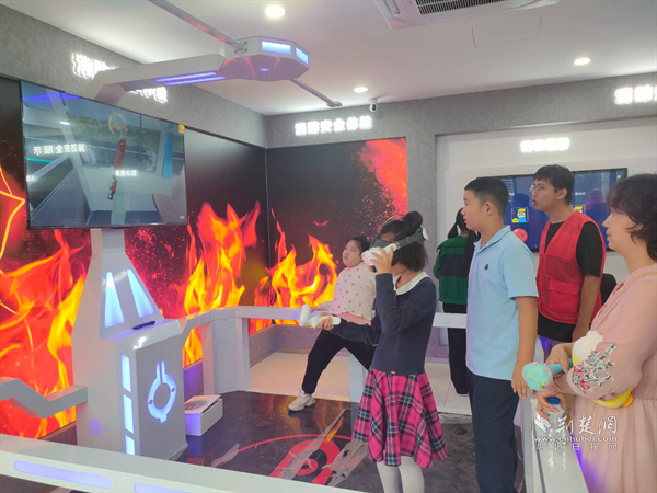 青少年在社区应急安全科普馆体验火灾逃生及地震避险演练。 通讯员供图