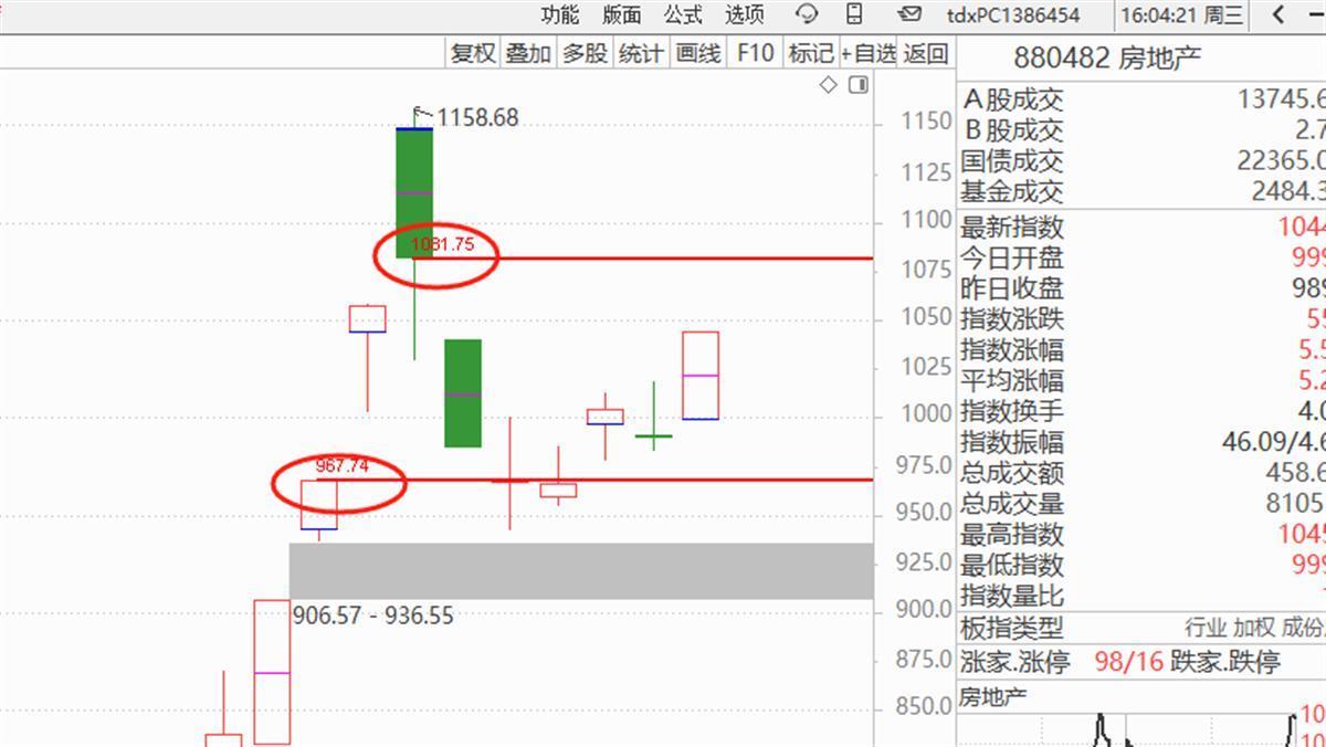 值得注意的是,从盘面看,房地产板块目前仍定义为触底反弹,特别是节后放量形成了1081点高位压制,从技术上讲,运行到此点位房地产个股或将面临分化,建议运行到此点位时弃弱留强。