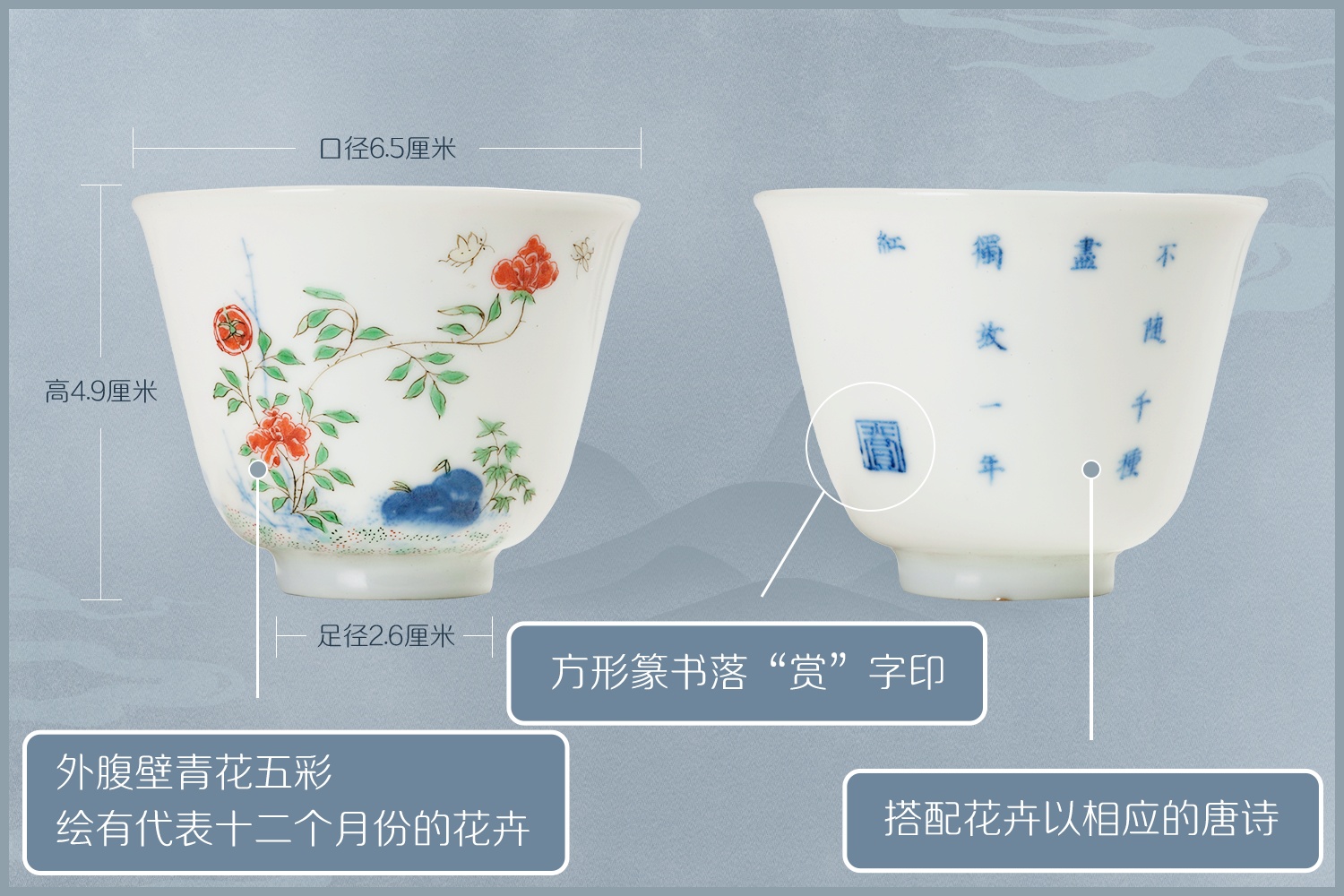 杯身绘有十二月令花卉
