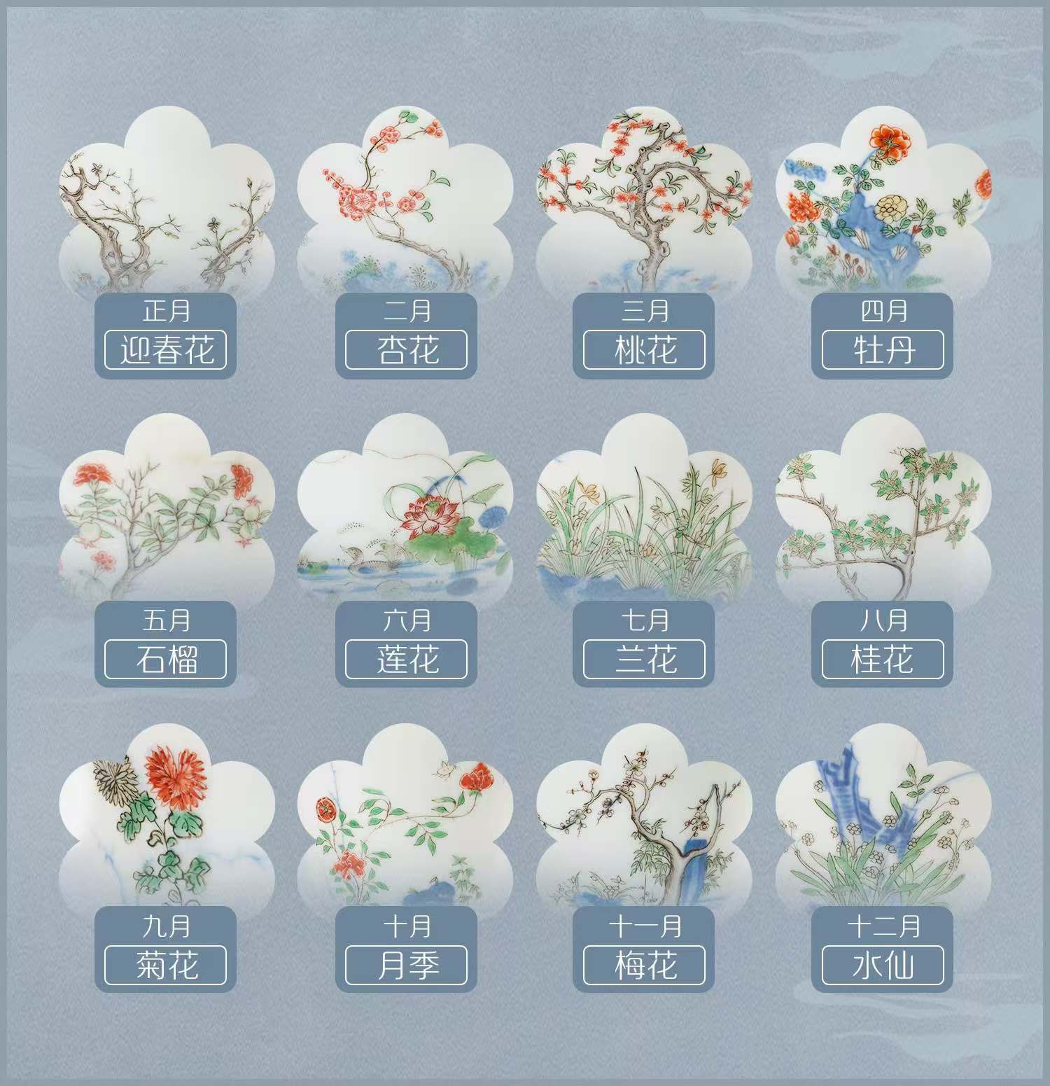 所以官窑便以“月令花神”为创作灵感