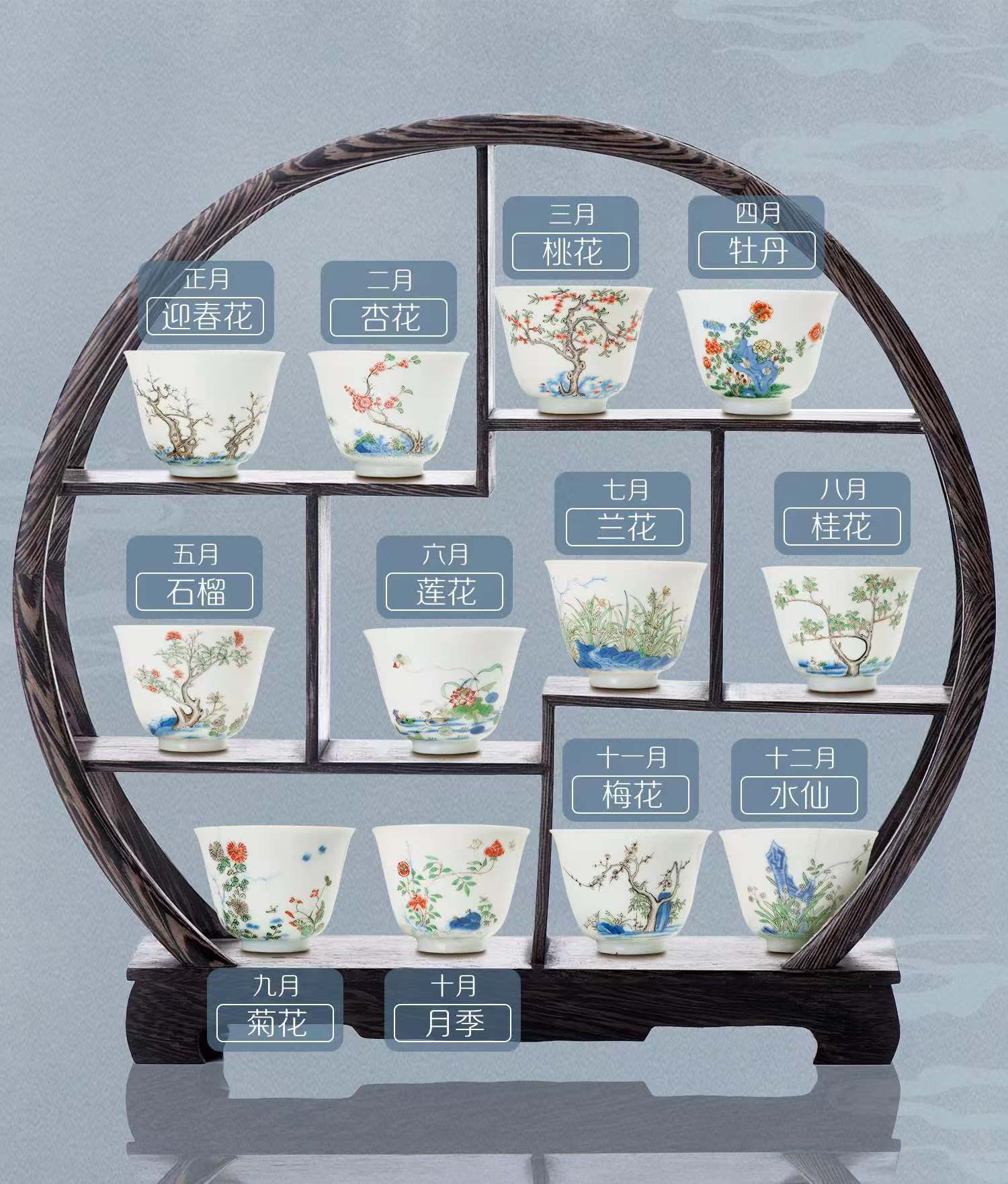 十二月花神诗文杯一套12只