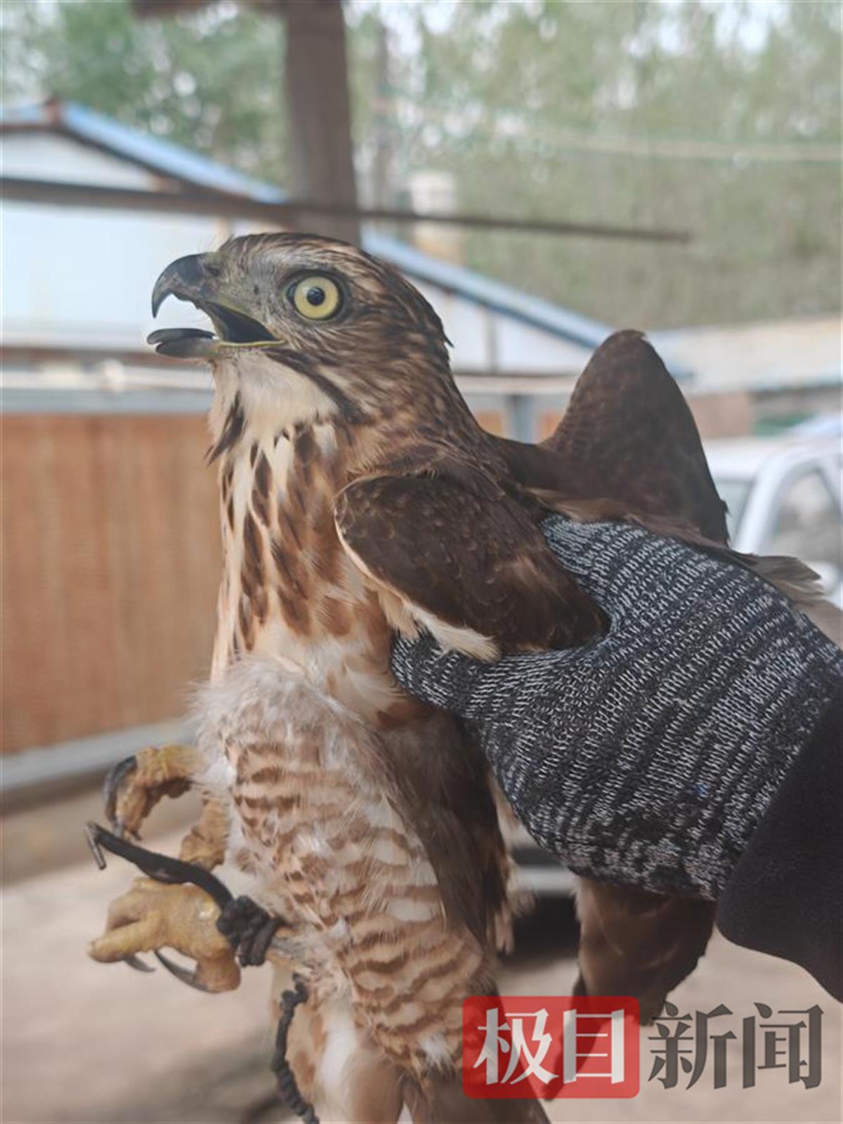 栗清秀是齐心村的养鸡专业户,当天,她正在对基地的鸡进行管护。“一只奇怪的鸟突然进入我的视线中,看起来像老鹰,但不敢确认。”栗清秀说,多年的养鸡经历,让她对鸟类知识有一定了解。为了安顿这只“不速之客”,她将这只不认识的鸟放在铁笼中暂养,还找来食物投喂。