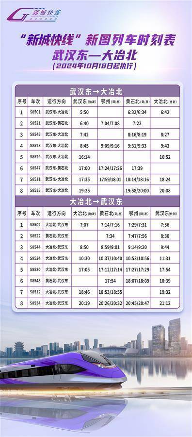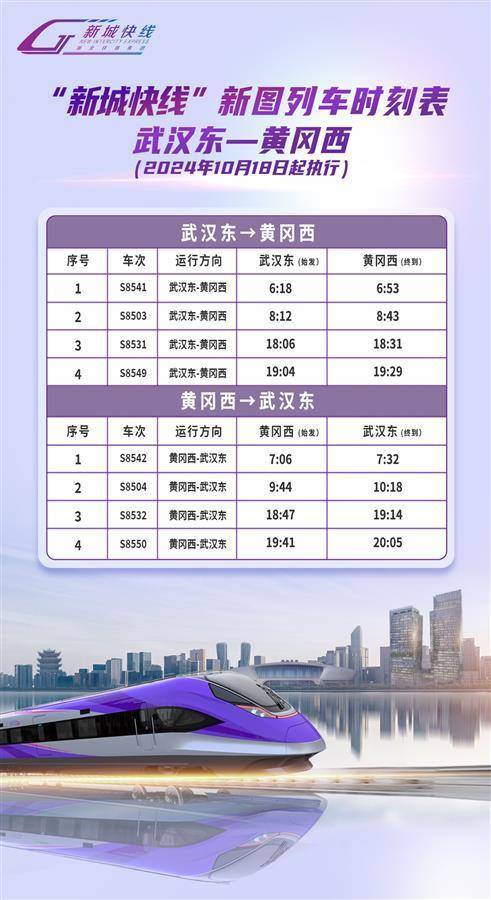 湖北日报讯(通讯员李晶晶)10月18日零时起,武汉“新城快线”调整运行图,列车日常开行执行同一张运行图,班次更密集,发班时间更优化。