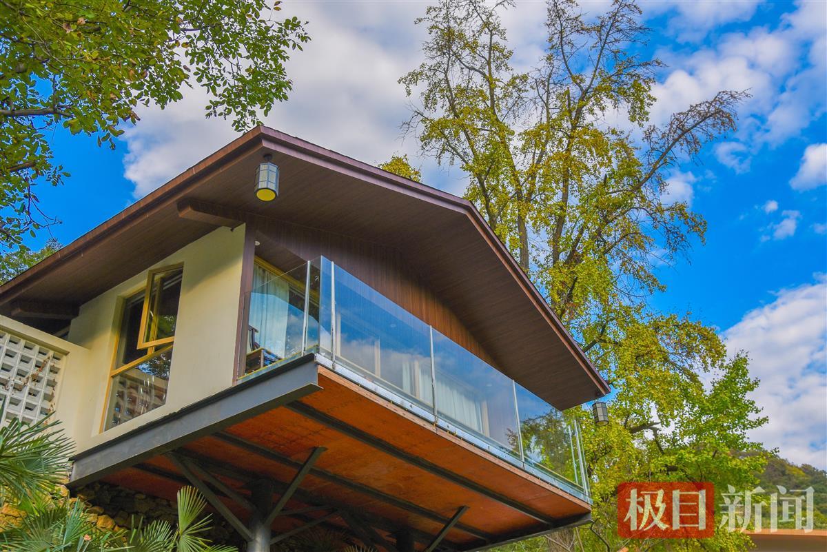 10月17日,游客在随州市随县大洪山水库琵琶湖景区的水无声民宿游玩