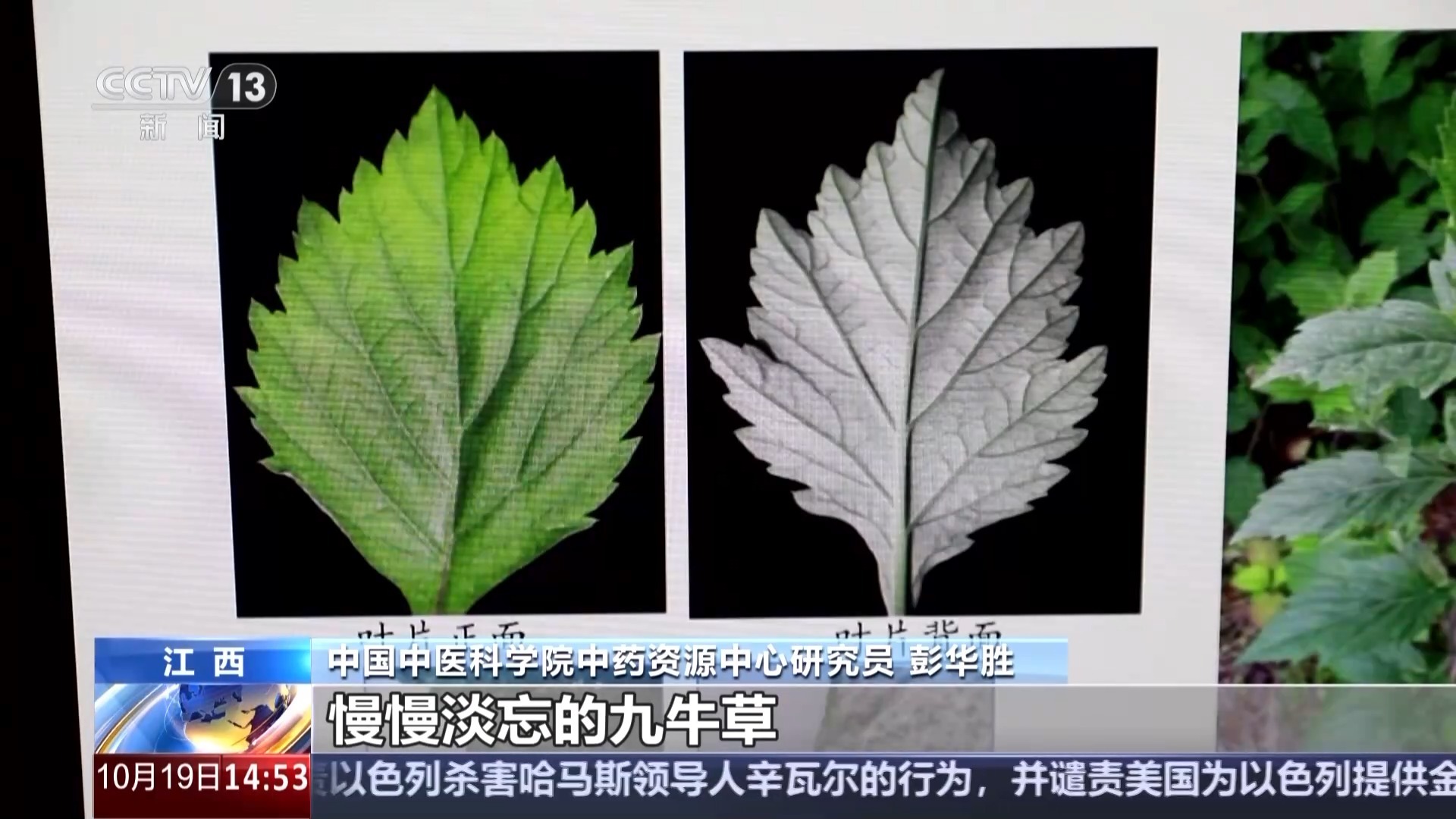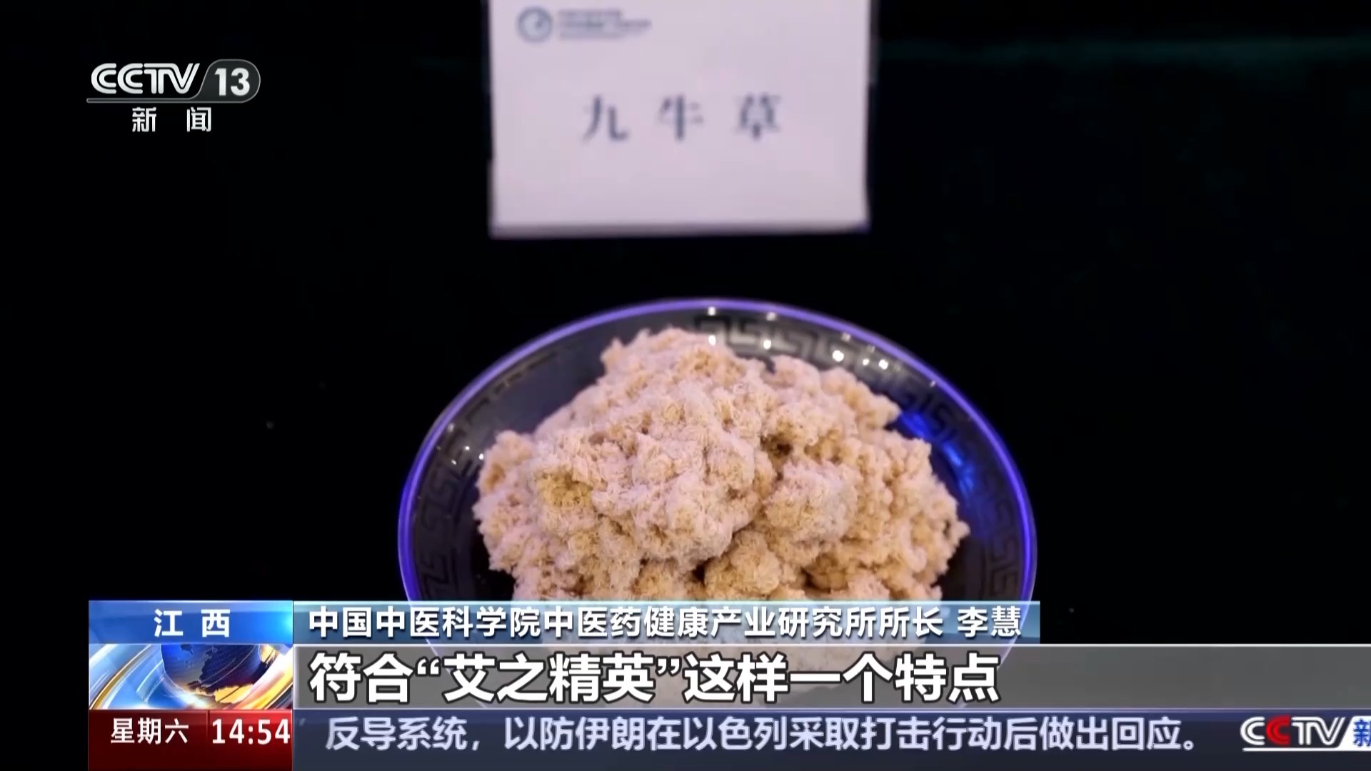 中国中医科学院中药资源中心研究员 彭华胜:我们到了海拔1000米左右,看到山上有一种蒿属的植物,叶子比较圆,背面有好多毛绒,闻起来艾香味特别浓厚,我们就跟药农聊这个事,药农对山上的艾草赞不绝口,他说这个艾比山下种的艾草更好,然后艾灸起来效果也非常棒。这时候我们就采下来,回去以后仔细研究,发现它和《本草图经》里面记载的筠州九牛草非常相似,这可能就是我们长时间本草中慢慢淡忘的九牛草。
