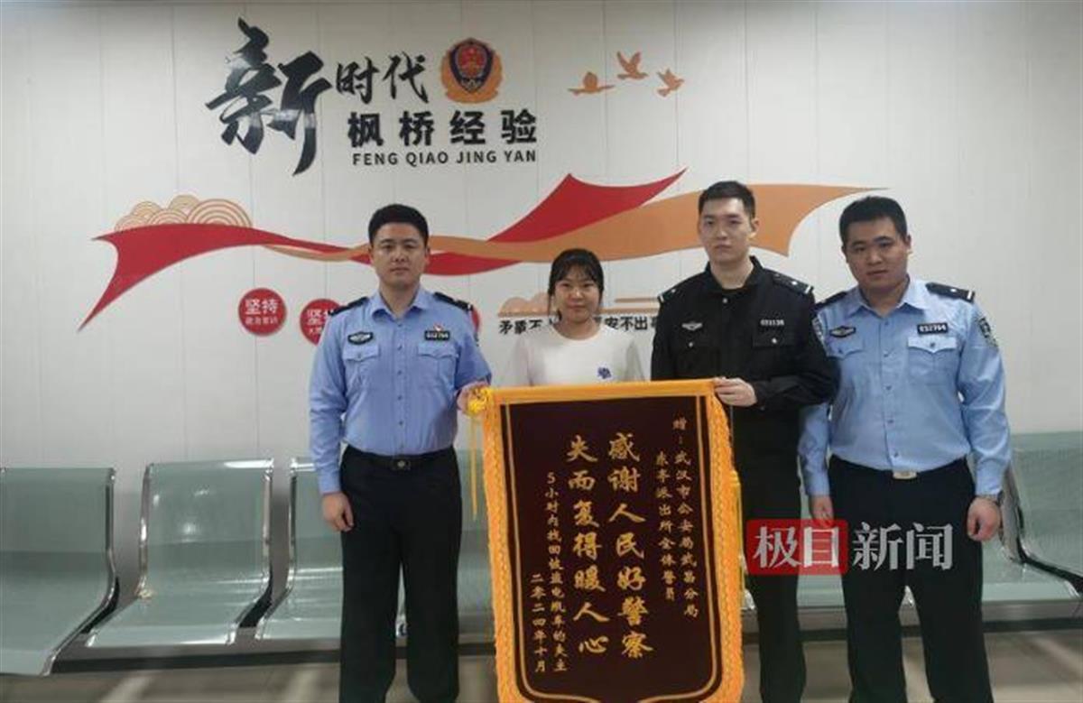 “感谢人民好警察,失而复得暖人心!”10月16日,关女士来到武汉市公安局武昌区分局东亭派出所向民警赠送锦旗。原来,10月14日下午许,她停放在青鱼嘴地铁站出口的电动自行车被盗,报了警。东亭派出所民警立即开展调查,通过大数据作战,快速发现嫌疑人叶某,查明其活动轨迹,随后将其抓获,追回了电动自行车。