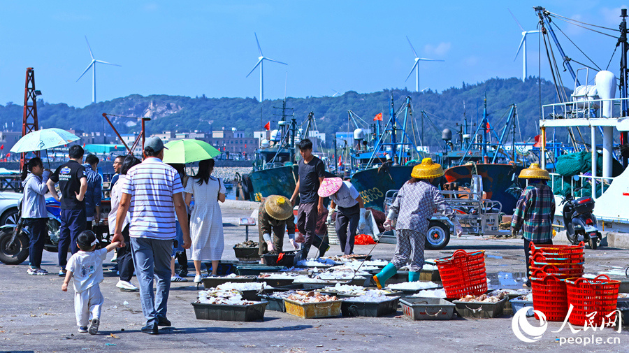 蓝天白云下,海风轻拂,白浪逐滩。随着一声声悠扬的汽笛声,一艘艘渔船满载而归,渐渐靠近澳角村码头。