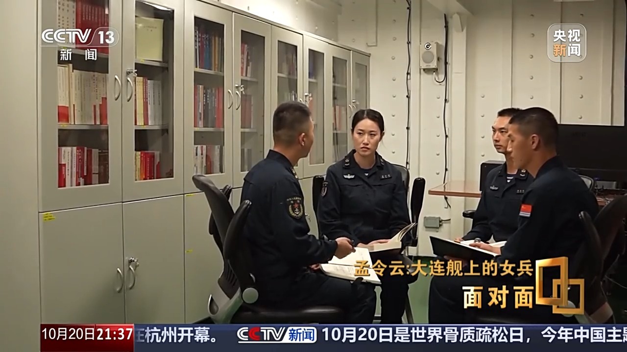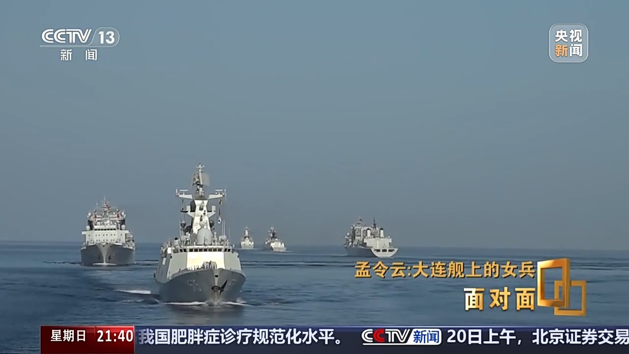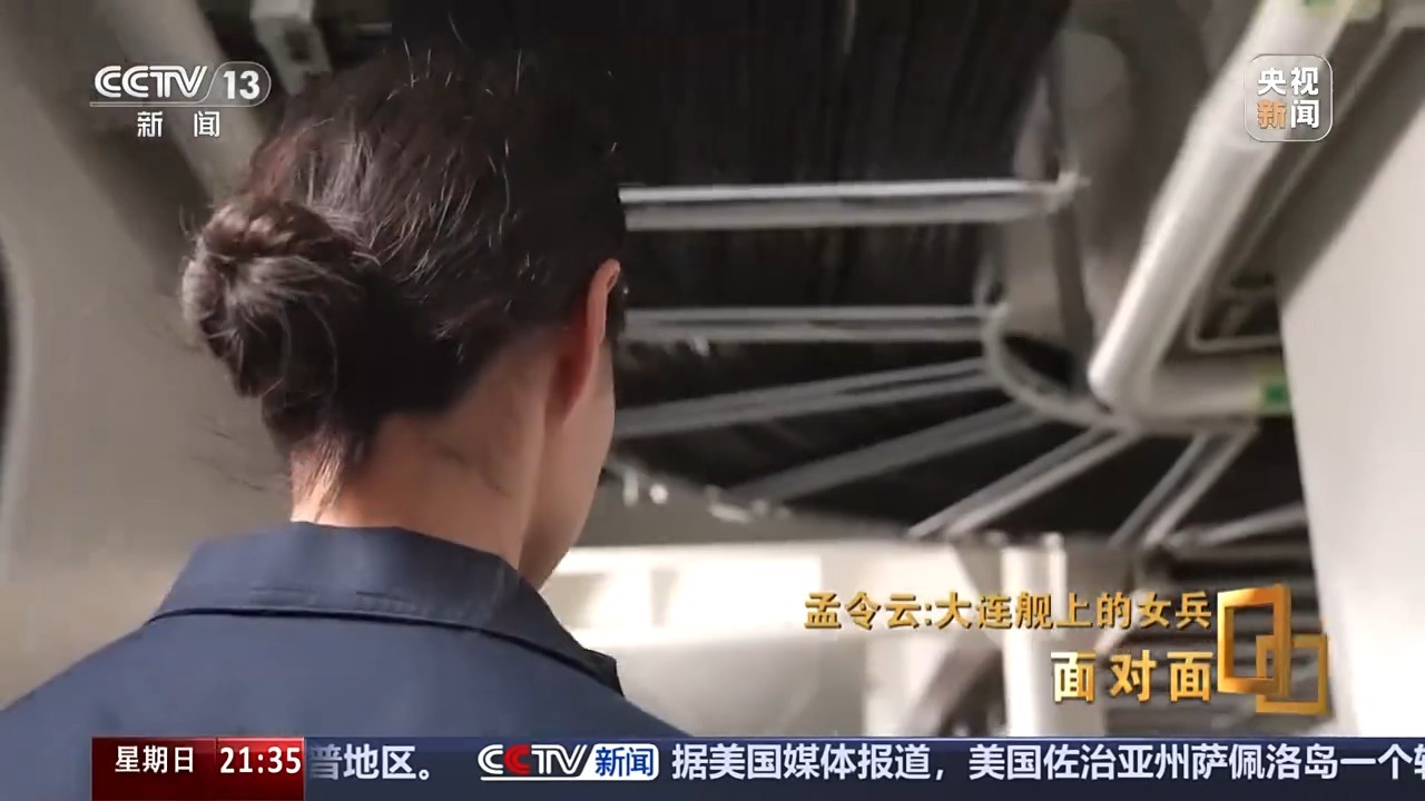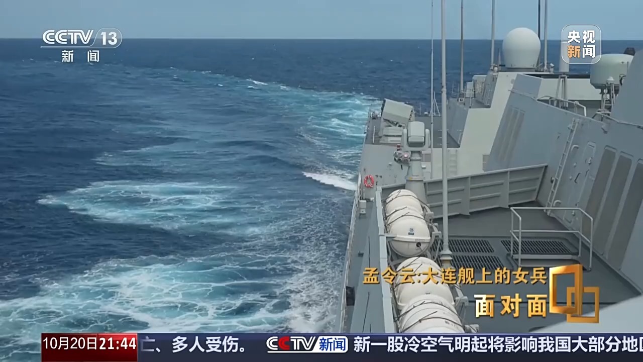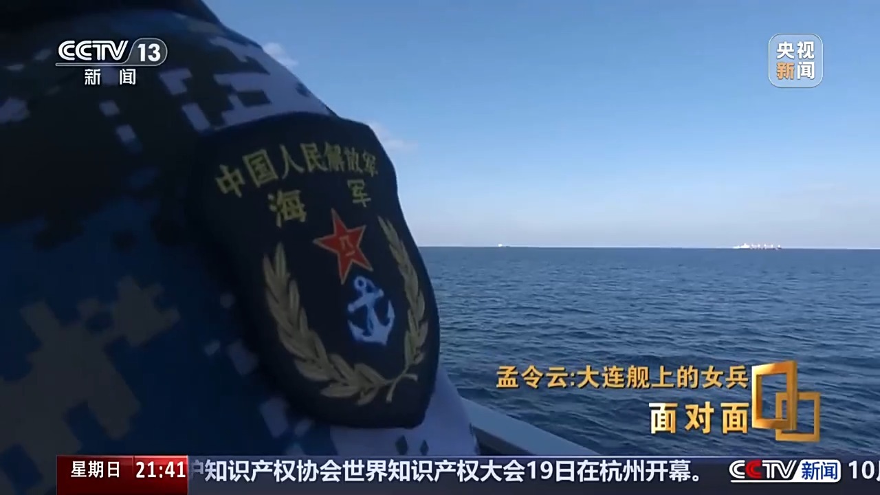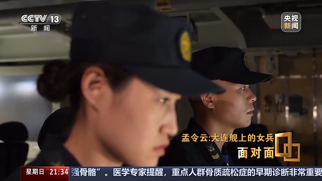 孟令云:时刻在战斗,可能很多人都觉得我们现在当的是和平兵,觉得永远都不会打仗,但是上了船之后发现不是这样的。有各种外国的军舰,那是我第一次见。刚上船的新兵不是很懂,但是我看见班长他们各种操作什么的,形势还是很严峻的,就是很紧张,整个氛围。