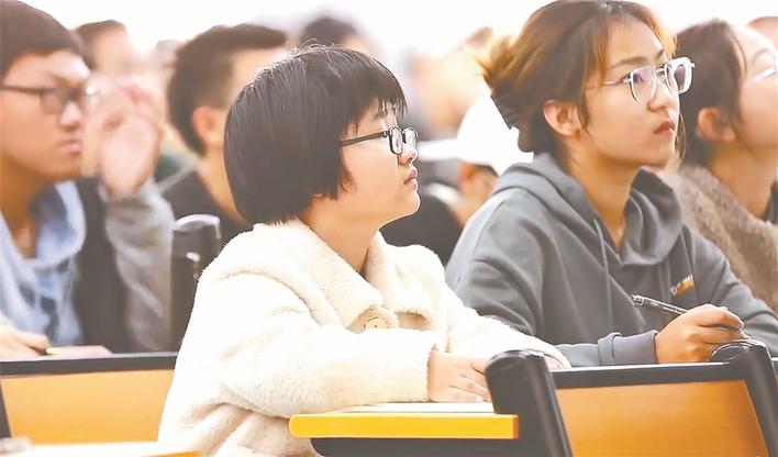 ◀邹贝贝在大学 课堂听课