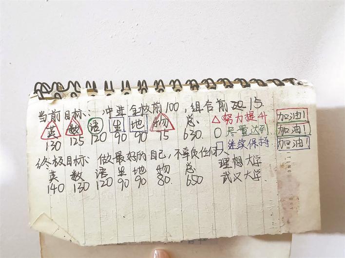 邹贝贝高中时为 自己定下的目标 受访者供图
