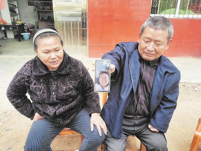 邹守华和妻子跟女儿视频通话 摄影:楚天都市报极目新闻记者高东起 刘微 邬晓芳 郑力强