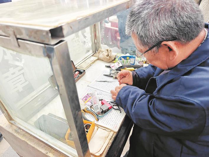 邹守华在钟表摊忙碌▶ 摄影:楚天都市报极目新闻记者高东起 刘微 邬晓芳 郑力强