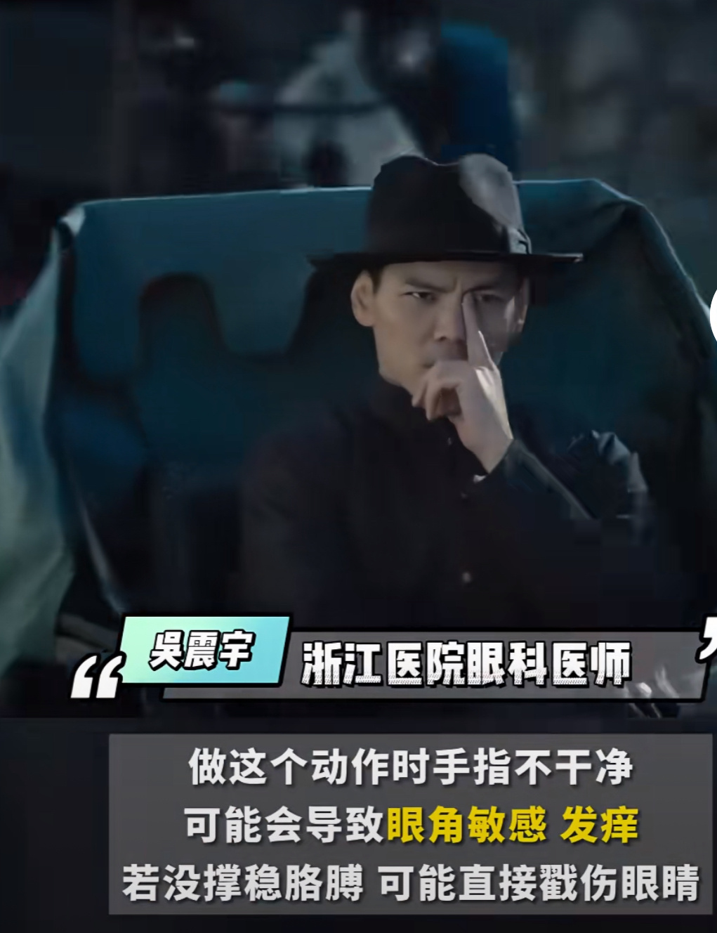 该医生还介绍到,做这个动作时手指不干净,可能会导致眼角敏感、发痒,若没撑稳胳膊,可能直接戳伤眼睛。