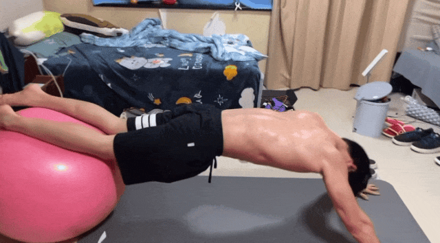 核心训练之瑞士球腹肌拉长。图源:抖音@泳往-直前 视频截图