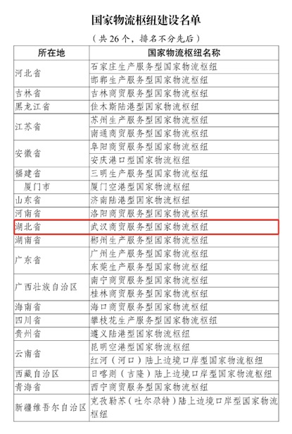 此次获批商贸服务型国家物流枢纽城市,标志着武汉市作为中部国家物流枢纽,成功跻身于“强枢纽”城市行列。