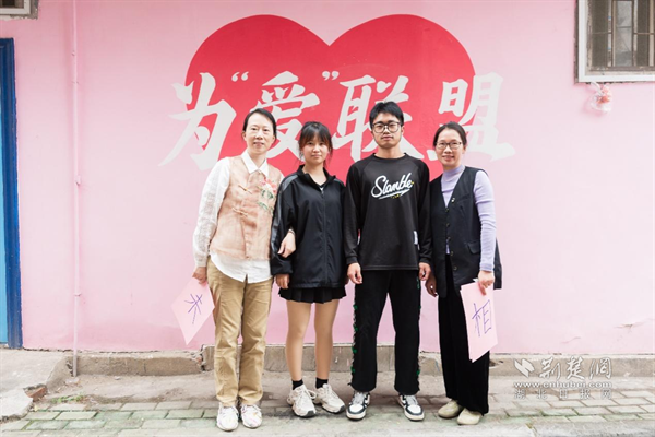 活动最后,青年们在花堤社区“爱联盟”工作室旁的粉色爱情巷合影留念。在充满浪漫氛围的爱情主题墙绘前,参与青年与自己的合缘对象两两结对拍照,为共度的美好时光留下见证。