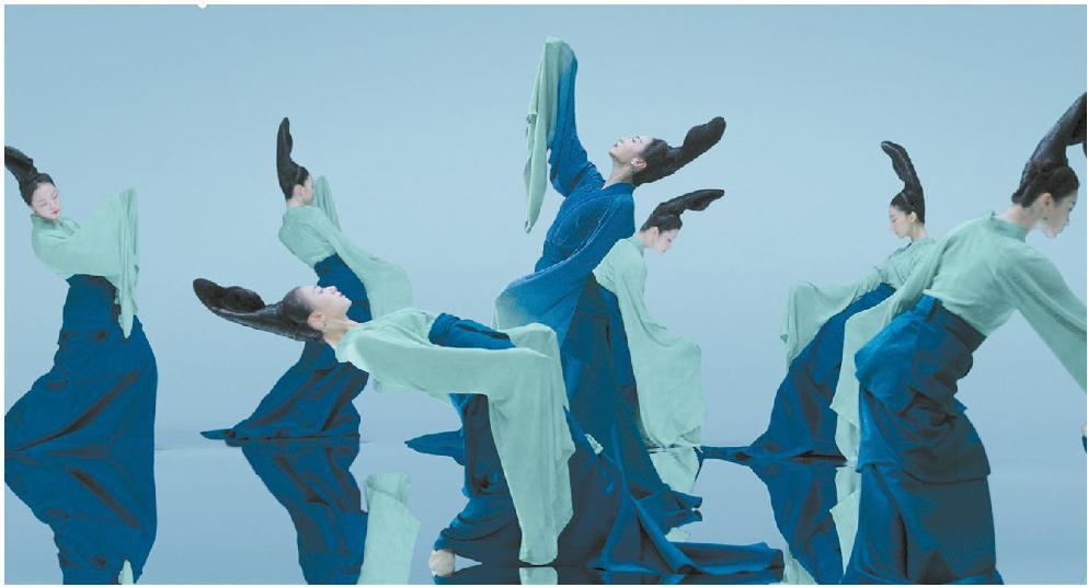 腰部向后倾斜至90°,上半身与地面平行的动作成为《只此青绿》的一个典型意象。图为电影《只此青绿》剧照。