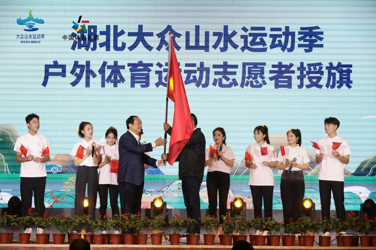 颁奖环节后,还举行了湖北大众山水运动季户外体育运动志愿者授旗仪式。胡功民同志将志愿者旗帜交到了江珩同志手中,这标志着更多武汉生物工程学院的志愿者们将积极地投身于“五个湖北”系列赛事,为赛事增添青春色彩。