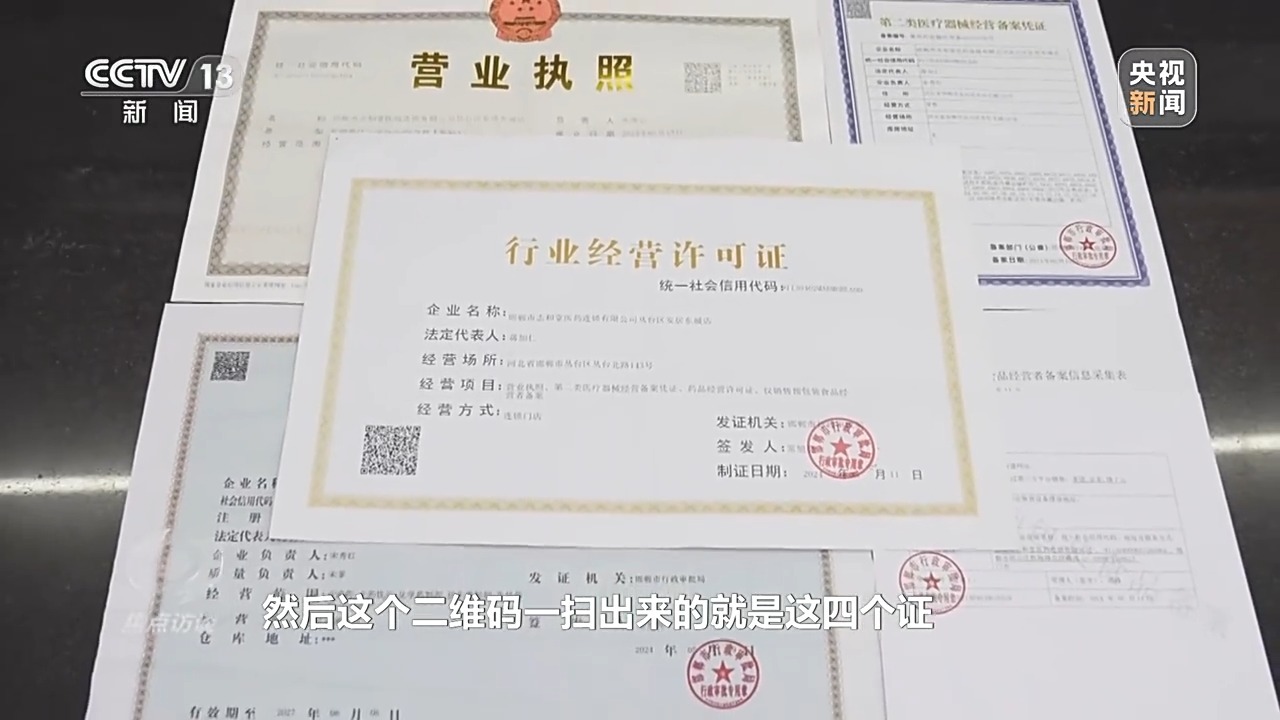 河北省邯郸市志和堂医药连锁有限公司副总经理 王峥:“营业执照、药品经营许可证、预包装食品备案证、第二类医疗机械经营备案证,每开一个药店,我们都需要办齐这四个证。比如我们要办理这个证照在邯山区,就要去邯山区行政审批办。”