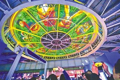 高新大道站三楼的穹顶光影秀,变幻出十二生肖。 (湖北日报全媒记者 朱熙勇 通讯员 张璨龙 摄)
