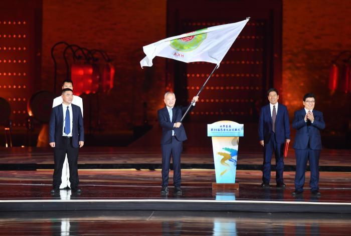 中新网洛阳10月27日电 (记者 阚力 符宇群)为期3天的世界客属第33届恳亲大会(以下简称世客会)26日晚在河南洛阳闭幕。闭幕式上,洛阳市市长徐衣显向海口市市长丁晖交接会旗,标志着第34届世客会进入“海南时间”。