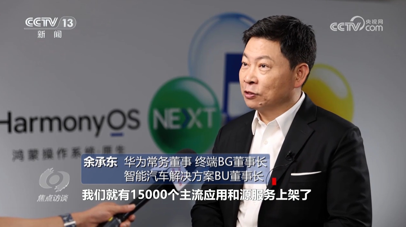 余承东:“原生鸿蒙的应用从宣布开始启动开发到现在刚刚一年时间,我们就有15000个主流应用和源服务上架了。我们开发用10年走过了别人20多年、30多年甚至40年走过的道路。”
