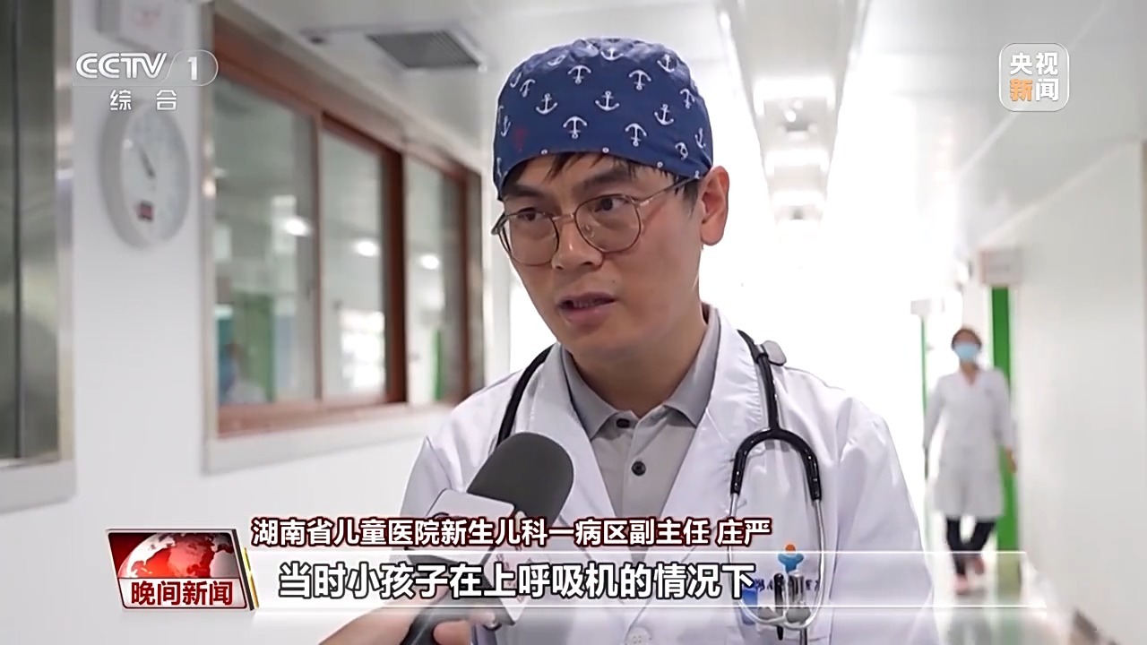 湖南省儿童医院新生儿科一病区副主任 庄严:当时小孩子在上呼吸机的情况下,不能够很好地维持他的血氧饱和度的情况下,突然出现了心率不稳定,需要进行抢救,这个场景是最最最惊险的。