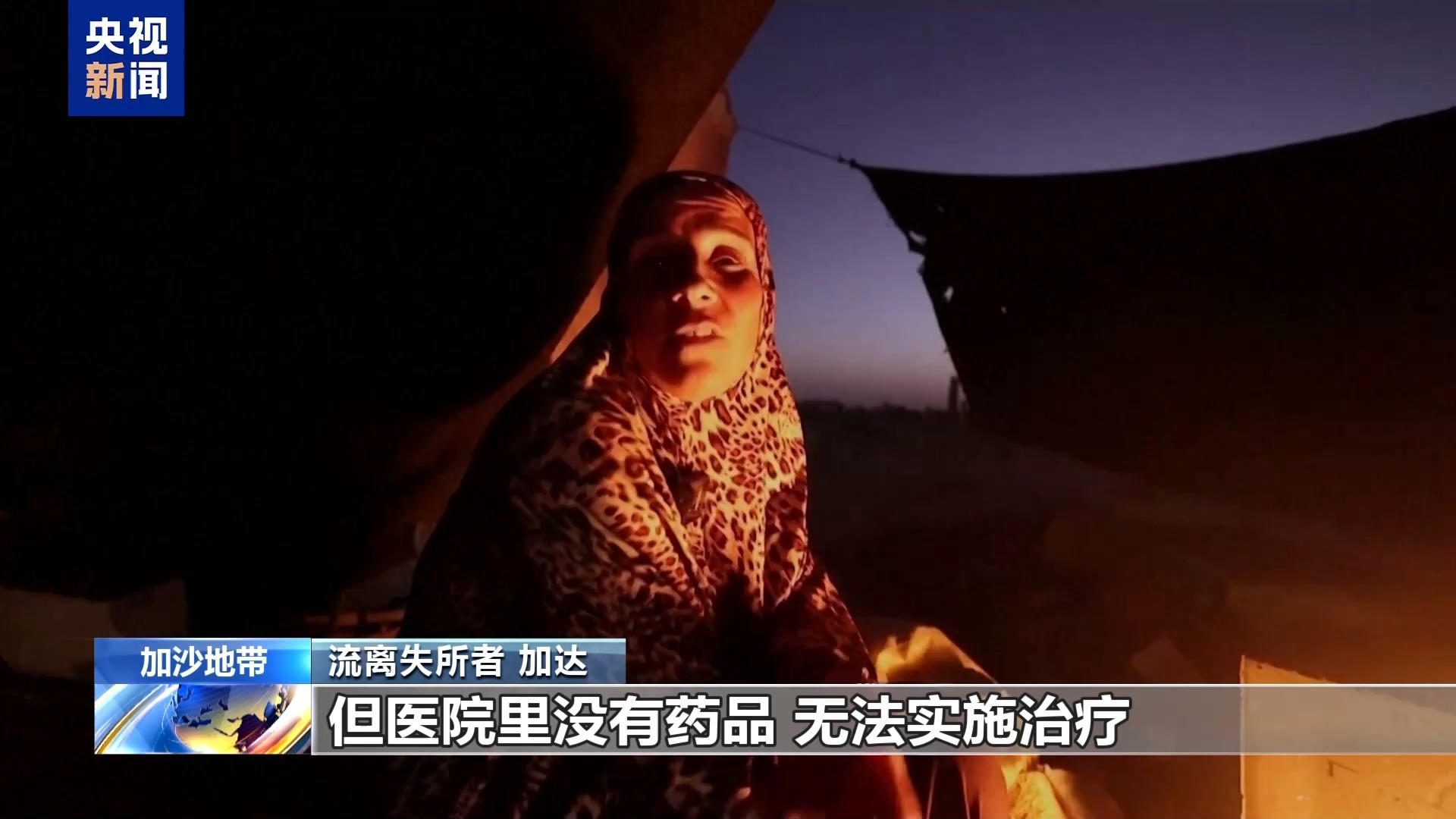 流离失所者 加达:现在还有医院在运营,但医院里没有药品,无法实施治疗,约旦医院、科威特医院、纳赛尔医院都没有,最后,医生只能给我开了处方,但我去哪里买药呢?我的女儿身上出了疹子,因为地面很脏,沙子也很脏,她没有拖鞋穿,只能光脚走路,家里没有拖鞋了,买的话又非常昂贵,我们去哪里能买到拖鞋呢。我们没有天然气,没有电力也没有电池,没有任何生存资源,我们的一切都被剥夺了。